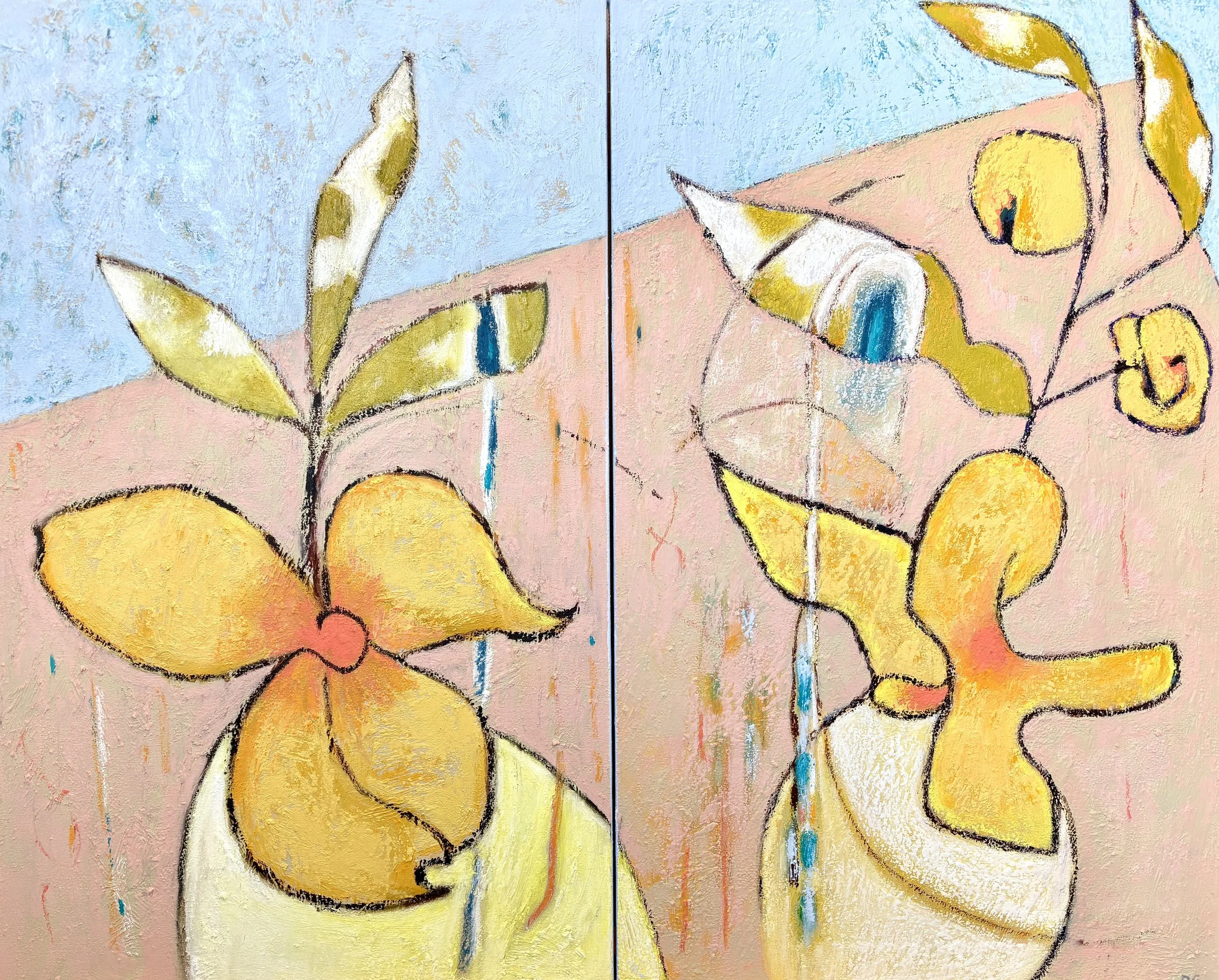 Garden Visitors II - Oil on linen 61x91 (Diptych) unframed £550